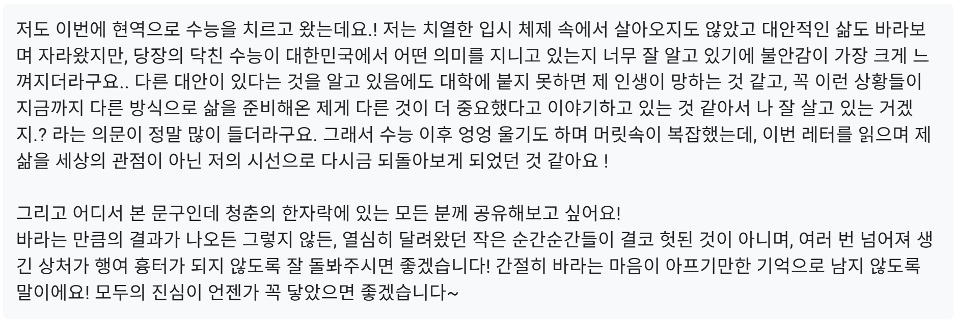 (💬: 저는 오랫동안 묻어둔 꿈을 이번 인턴십을 통해 다시 찾았어요.)